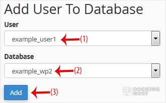 3. Scroll down to the end of the page and under Add User to Database. Select a user from the drop-down list, and choose a Database from the list.
