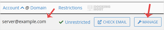 4. If your email address is server@example.com, you should see a Manage option on the right side of your email address. Click on Manage.