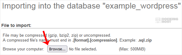 3. From the navigation tree in the left sidebar, select an appropriate database in which you want to import data using the SQL file.