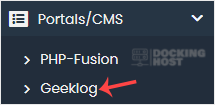 4. On the left side, locate the Portal/CMS category. Click on it and then on the Geeklog link that appears.