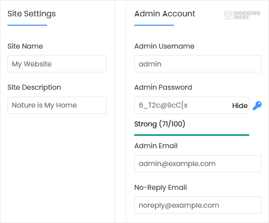 Advanced Options: Leave this unless you want to change the database name or take an automated backup. Please, note that creating frequent backups may take a lot of disk space.