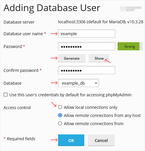 Password: Enter the password or click Generate to generate one. Then click on Show and copy the password in a safe place.