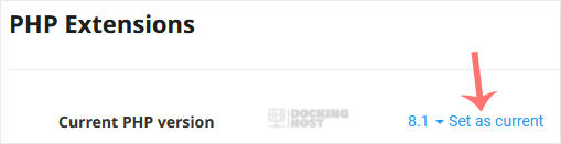 3. To the right side of the Current PHP version, click on the drop-down menu and choose the version you want to use.